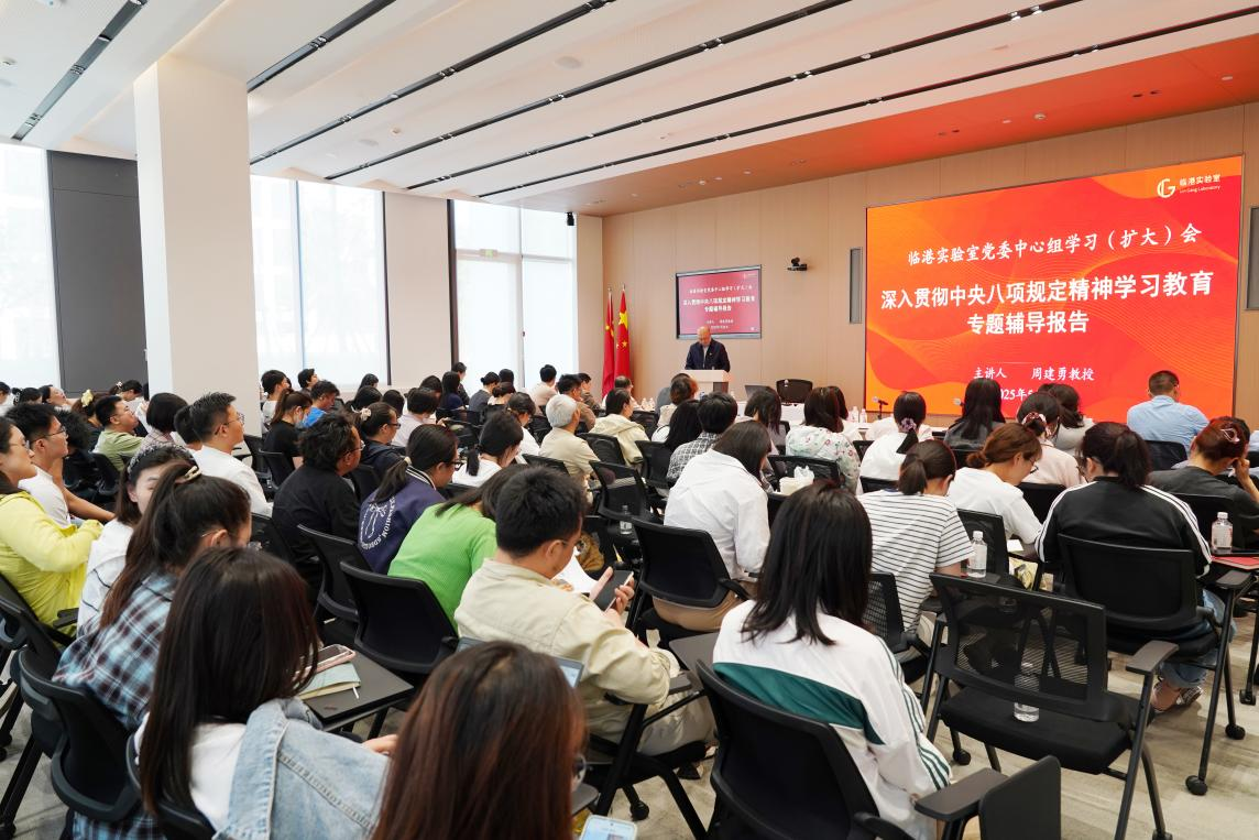 临港实验室党委举办深入贯彻中央八项规定精神学习教育专题辅导报告会2025-05-275月26日下午,临港实验室党委举办中心组学习(扩大)会暨深入贯彻中央八项规定精神学习教育专题辅导报告会,邀请市委党校中外政党比较研究中心主任周建勇教授作《深入学习习近平总书记关于加强党的作风建设的重要论述,锲而不舍贯彻中央八项规定精神》专题辅报告。 5月26日下午,临港实验室党委举办中心组学习(扩大)会暨深入贯彻中央八项规定精神学习教育专题辅导报告会,邀请市委党校中外政党比较研究中心主任周建勇教授作《深入学习习近平总书记关于加强党的作风建设的重要论述,锲而不舍贯彻中央八项规定精神》专题辅报告。报告会由实验室党委副书记徐旭同志主持,全体党员(含学生)、部分党外代表等170余人参加。周建勇教授从提高政治站位、领悟重大意义,把握基本要求、学深悟透精神,精心组织实施、确保取得实效三个方面分享了如何加强党的作风建设,锲而不舍贯彻中央... -
